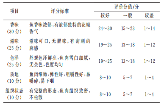 表1 花椒魚(yú)片感官評(píng)價(jià)標(biāo)準(zhǔn)