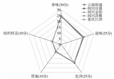 青花椒產(chǎn)地對(duì)花椒魚(yú)片感官評(píng)分的影響